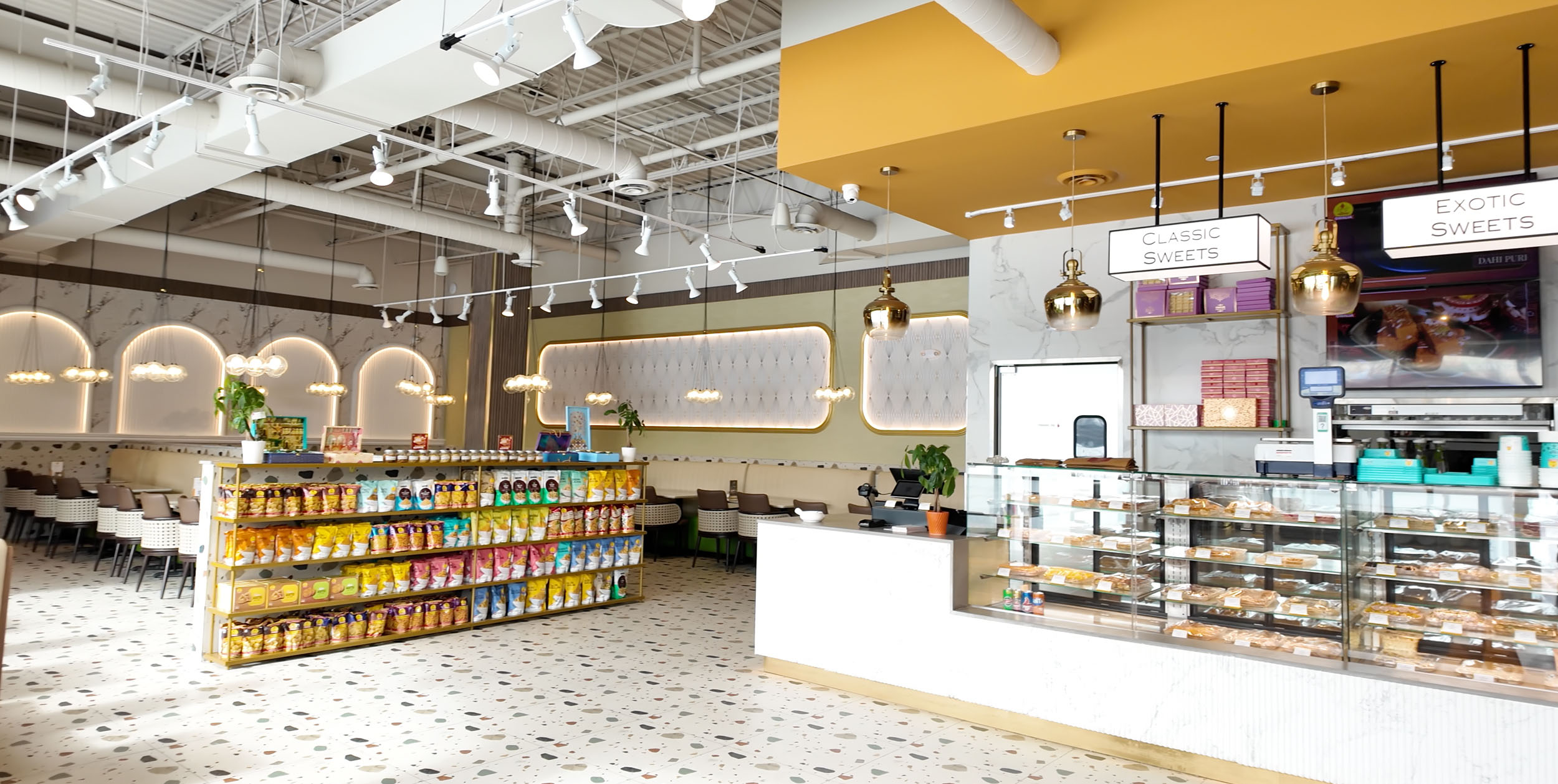 Mecharm Group delivered a turnkey solution for Gwalia Brampton, starting from planning and permits to the final finishing touches. We executed detailed tilework, lighting design, and installed advanced ventilation and refrigeration systems tailored to the demands of an authentic Indian sweet and snack restaurant. Our team ensured the layout supported both dine-in and high-capacity takeaway operations while maintaining the aesthetic and functional integrity of the brand.